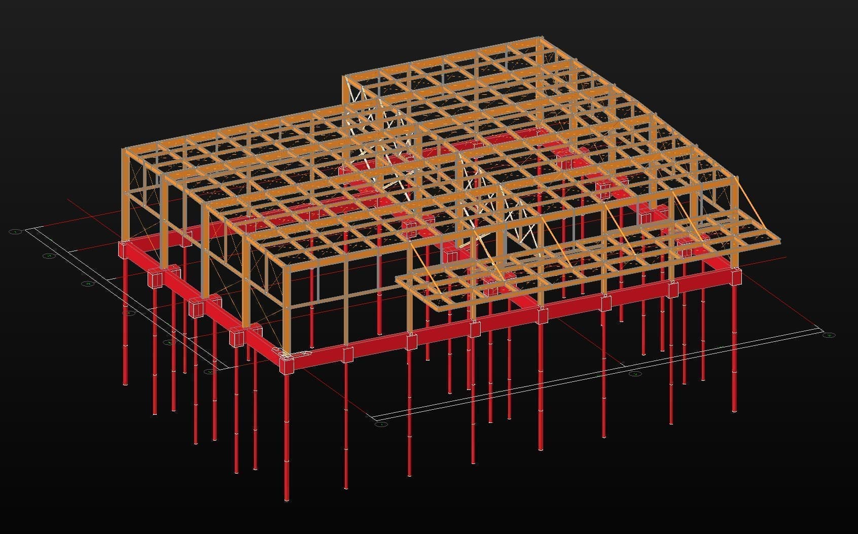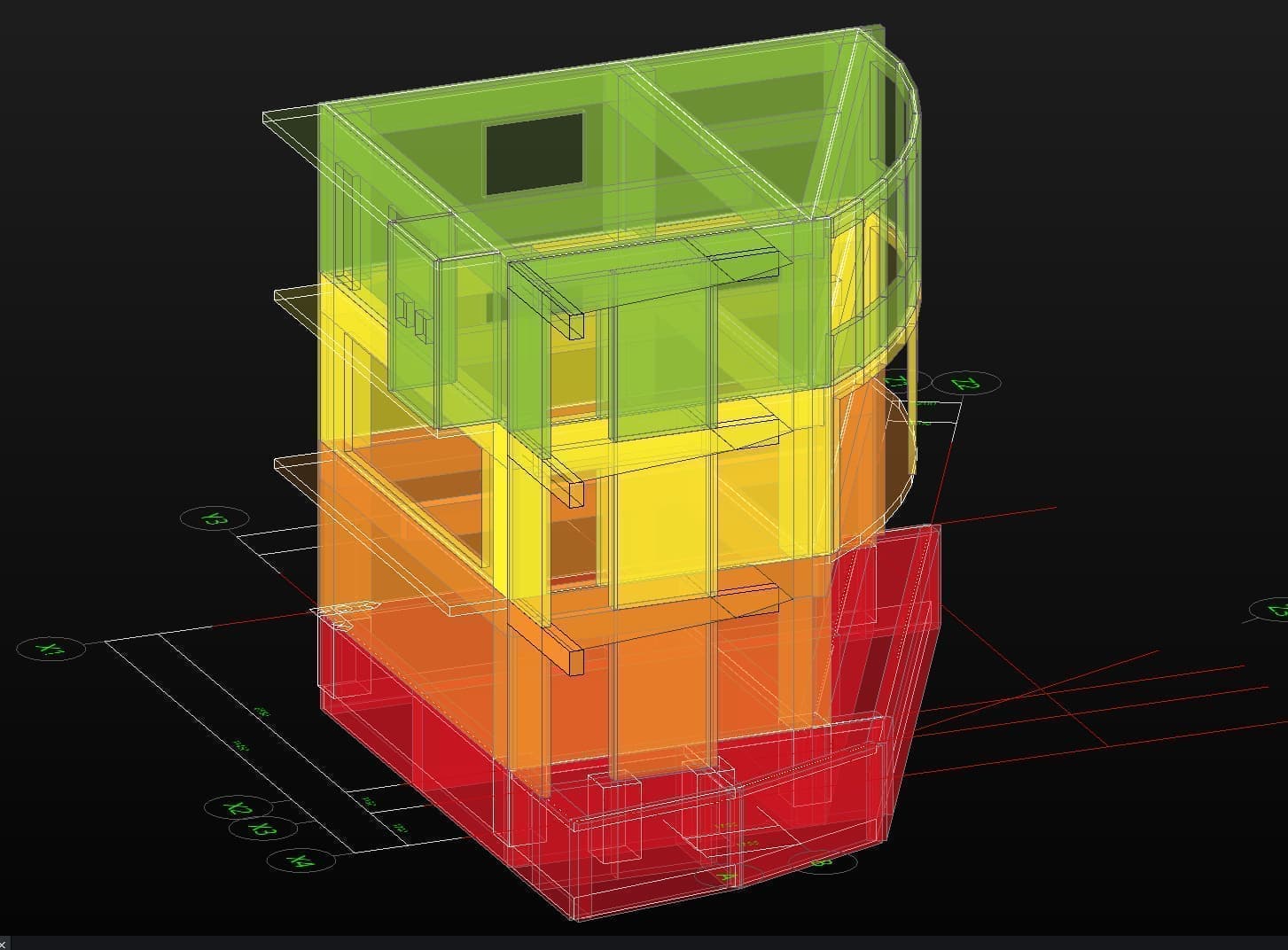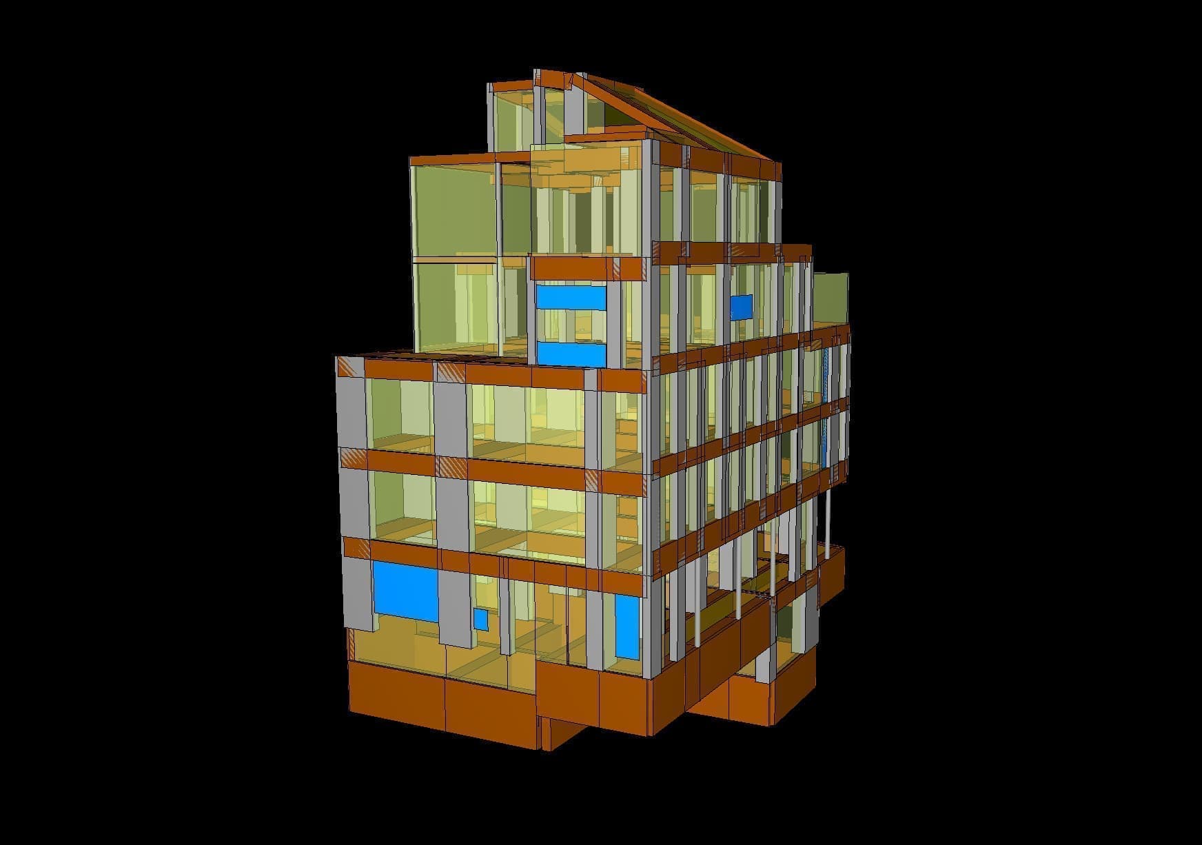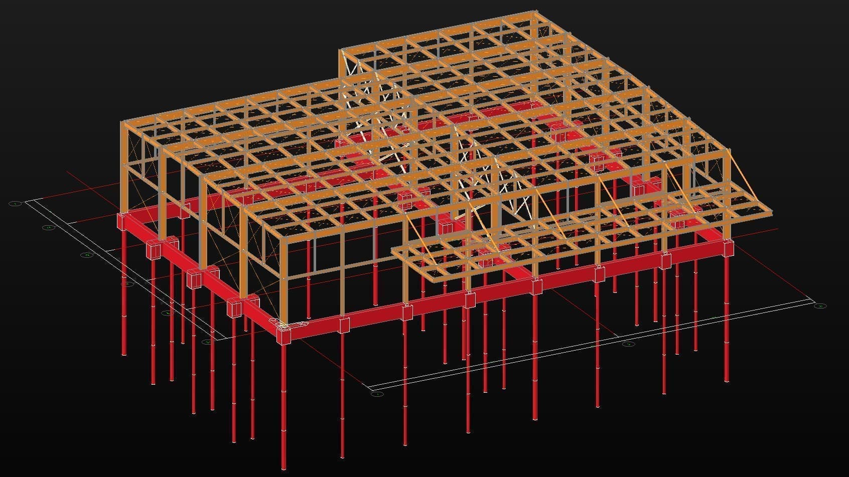 3階建て某公共施設意匠的には3階建てで有るが構造的には5階建て鉄骨造建物の計算書復元作業。 |