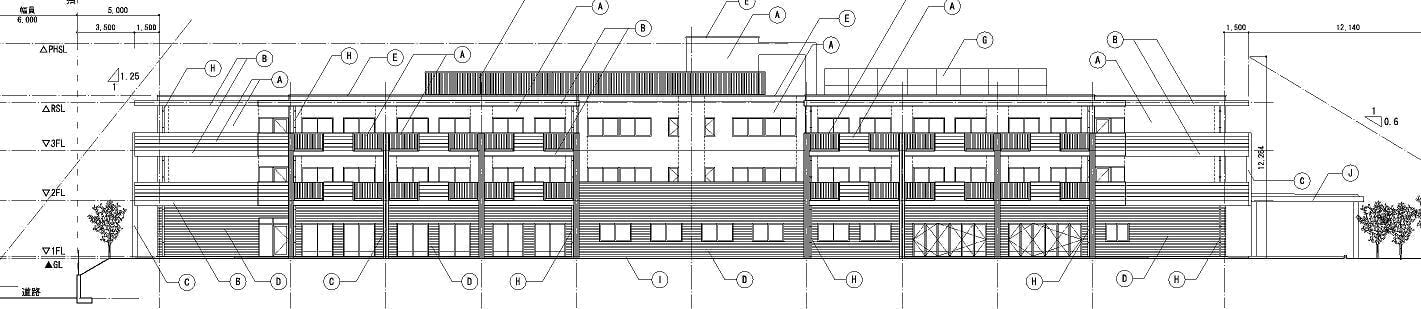 地下1階、地上4階建て共同住宅地下1階地上4建て壁式コンクリート構造、、構造設ルート1を採用とする。 |